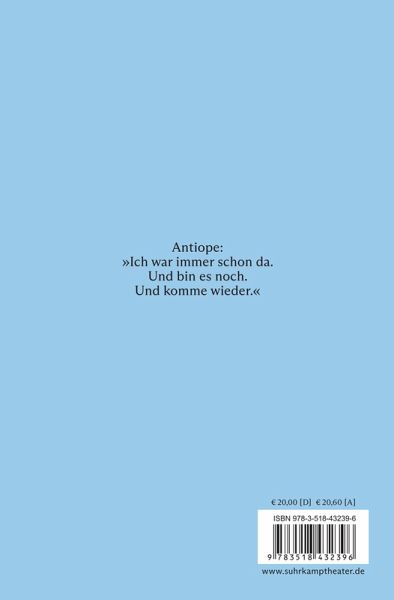 Schulte erfindet Antiope als schillernde, queere Figur, die sich selbstbestimmt allen Eindeutigkeiten entzieht und damit Hass auf sich zieht - und dennoch eine subtile Faszination ausübt auf diejenigen, die sie unterdrücken. Die Mauern werden hochgezogen, die Perspektiven verkleinert, der Fremdkörper domestiziert. Ohne Erfolg, Antiope bleibt eigen. Der Theatertext beschreibt eine gesellschaftliche und politische Dynamik, die in vielen Demokratien hochaktuell ist.