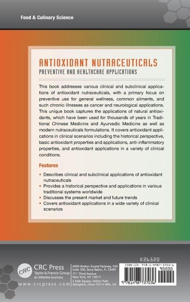 This book addresses various clinical and sub clinical applications of antioxidant nutraceuticals, with a primary focus on preventive use for general wellness, common ailments, and such chronic illnesses as cancer and neurological applications. This unique book captures the applications of natural antioxidants, which have been used for thousands of years in Traditional Chinese Medicine and Ayurvedic Medicine as well as modern nutraceuticals formulations. It covers antioxidant applications in clinical scenarios including the historical perspective, basic antioxidant properties and applications, anti-inflammatory properties, and antioxidant applications in a variety of clinical conditions.