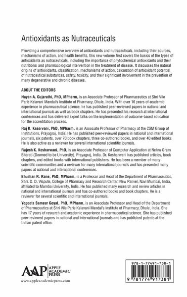 Nayan A. Gujarathi, PhD, MPharm, is an Associate Professor of Pharmaceutics at Shri Vile Parle Kelavani Mandal's Institute of Pharmacy, Dhule, India. With over 16 years of academic experience in pharmaceutical science, he has published peer-reviewed papers in national and international journals as well as book chapters. He has presented his research at international conferences and has delivered expert talks on the implementation of outcome-based education for the accreditation process. Raj K. Keservani, PhD, MPharm, is an Associate Professor of Pharmacy at the CSM Group of Institutions, Prayagraj, India. He has published peer-reviewed papers in national and international journals, six patents, over 70 book chapters, three co-authored books, and over 40 edited books. He is also active as a reviewer for several international scientific journals. Rajesh K. Kesharwani, PhD, is an Associate Professor of Computer Application at Nehru Gram Bharati (Deemed to be University), Prayagraj, India. Dr. Kesharwani has published articles, book chapters, and edited books with international publishers. He has been a member of many scientific communities and a reviewer for many international journals and has presented many papers at national and international conferences. Bhushan R. Rane, PhD, MPharm, is a Professor and Head of the Department of Pharmaceutics, Shri. D. D. Vispute, College of Pharmacy and Research Center, New Panvel, Navi Mumbai, India, affiliated to Mumbai University, India. He has published many research and review articles in national and international journals and has co-authored books and book chapters. He is a reviewer for several scientific and international journals. Yogeeta Sameer Goyal, PhD, MPharm, is an Associate Professor and Head of the Department of Pharmaceutics at Shri Vile Parle Kelavani Mandal's Institute of Pharmacy, Dhule, India. She has 17 years of research and academic experience in pharmaceutical science. She has published peer-reviewed papers in national and international journals and has published patents at the Indian patent office.
