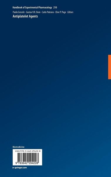 Antiplatelet therapy is the cornerstone of treatment of ischemic cardiovascular disease and over the last few years spectacular advancements in this field have been recorded. This is the first comprehensive handbook entirely dedicated to all the aspects of antiplatelet therapy. The book is divided into three main sections, pathophysiology, pharmacology and therapy, for a total of 23 chapters. A large group of leading experts from different European countries and from the USA, both from academia and industry, have contributed to the book. Besides a detailed overview on the pharmacology and clinical applications of all the currently used or of the novel antiplatelet agents, innovative approaches (e.g. intracellular signalling as an antiplatelet target, small RNAs as platelet therapeutics, etc.) or unconventional aspects (e.g. pharmacologic modulation of the inflammatory action of platelets are also treated. The book is oriented to both basic investigators and to clinicians involvedwith research on platelet inhibition or with the clinical use of antiplatelet therapies.