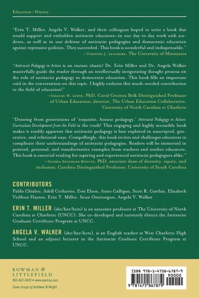 Introduction: The Role of Antiracist Pedagogy in Democratic Education Angela V. Walker, Erin T. Miller, & Scott R. Gartlan Chapter One: Antiracist Pedagogy: An Overview Erin Miller & Angela Walker Chapter Two: Dismantling Internalized Anti-Black Racism in Advanced English Literature Instruction Angela V. Walker Chapter Three: Justice is more Important than Kindness: Antiracist Pedagogy in a 1st Grade Classroom Annie Galligan Chapter Four: Middle School English Language Arts: My Personal Story of Exploration, Empowerment & Antiracist Teaching Seun Omitoogun Chapter Five: Confronting Scientific Racism and Eugenics in a Freshman Biology Course Pablo Chialvo Chapter Six: A Revised Narrative of the Civil Rights Movement and the Power of People in a High School History Course Elizabeth Veilleux Haynes Chapter Seven: Middle School Biology Students Learn How Structural Racism in the US Shaped Our COVID Experience Evie Elson Chapter Eight: Intersectionality & Antiracism: Leadership Pedagogy with College Conclusion: Necessary Damage: A Conclusion Angela V. Walker& Erin T. Miller