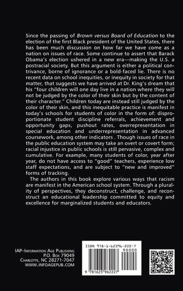Since the passing of Brown versus Board of Education to the election of the first Black president of the United States, there has been much discussion on how far we have come as a nation on issues of race. Some continue to assert that Barack Obama's election ushered in a new era-making the US a post-racial society. But this argument is either a political contrivance, borne of ignorance or a bold-faced lie. There is no recent data on school inequities, or inequity in society for that matter, that suggests we have arrived at Dr. King's dream that his "four children will one day live in a nation where they will not be judged by the color of their skin but by the content of their character." Children today are instead still judged by the color of their skin, and this inequitable practice is manifest in today's schools for students of color in the form of: disproportionate student discipline referrals, achievement and opportunity gaps, pushout rates, overrepresentation in special education and underrepresentation in advanced coursework, among other indicators (Brooks, 2012). Though issues of race in the public education system may take an overt or covert form; racial injustice in public schools is still pervasive, complex and cumulative. For example, many students of color, year after year, do not have access to "good" teachers, experience low staff expectations, and are subject to "new and improved" forms of tracking (Brooks, Arnold & Brooks, in press). The authors in this book explore various ways that racism are manifest in the American school system. Through a plurality of perspectives, they deconstruct, challenge and reconstruct an educational leadership committed to equity and excellence for marginalized students and educators.