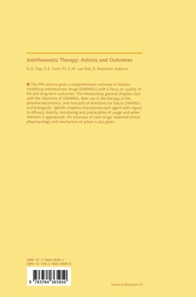 This book gives a comprehensive overview of disease-modifying antirheumatic drugs (DMARDs). The introductory general chapters deal with the chemistry of DMARDs, their use in therapy, pharmacoeconomics, and a survey of opinion leaders in the field; the following specific chapters characterize each agent with regard to mechanism of action, therapy, pharmacology, efficacy, toxicity, and monitoring. For each agent some background is given, recent developments and influence of the treatment on patients` quality of life and long-term outcomes are presented.