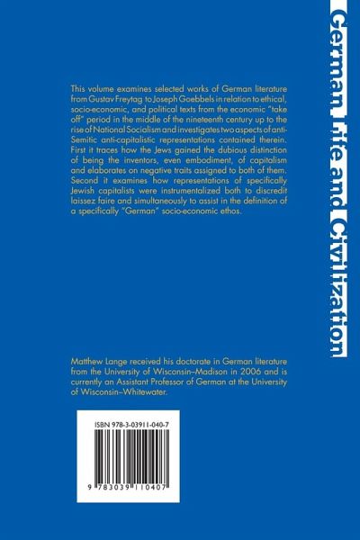 This volume examines selected works of German literature from Gustav Freytag to Joseph Goebbels in relation to ethical, socio-economic, and political texts from the economic "take off" period in the middle of the nineteenth century up to the rise of National Socialism and investigates two aspects of anti-Semitic anti-capitalistic representations contained therein. First it traces how the Jews gained the dubious distinction of being the inventors, even embodiment, of capitalism and elaborates on negative traits assigned to both of them. Second it examines how representations of specifically Jewish capitalists were instrumentalized both to discredit laissez faire and simultaneously to assist in the definition of a specifically "German" socio-economic ethos.