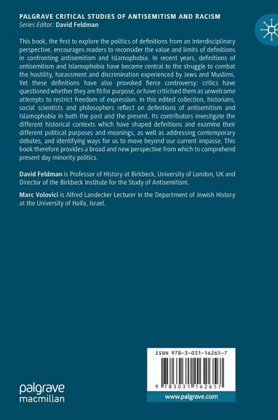 This book, the first to explore the politics of definitions from an interdisciplinary perspective, encourages readers to reconsider the value and limits of definitions in confronting antisemitism and Islamophobia. In recent years, definitions of antisemitism and Islamophobia have become central to the struggle to combat the hostility, harassment and discrimination experienced by Jews and Muslims. Yet these definitions have also provoked fierce controversy: critics have questioned whether they are fit for purpose, or have criticised them as unwelcome attempts to restrict freedom of expression. In this edited collection, historians, social scientists and philosophers reflect on definitions of antisemitism and Islamophobia in both the past and the present. Its contributors investigate the different historical contexts which have shaped definitions and examine their different political purposes and meanings, as well as addressing contemporary debates, and identifying ways forus to move beyond our current impasse. This book therefore provides a broad and new perspective from which to comprehend present day minority politics.
