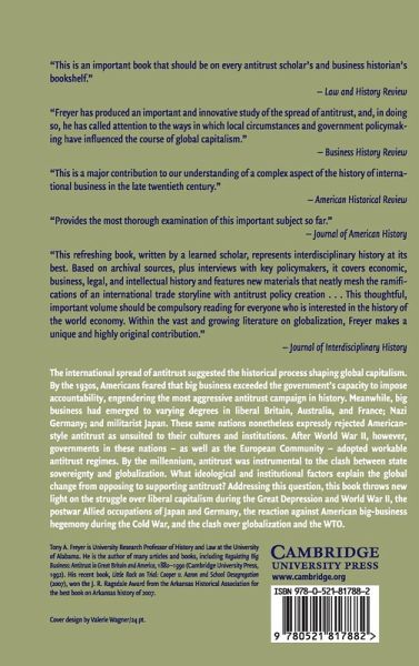 The international spread of antitrust suggested the historical process shaping global capitalism. By the 1930s, Americans feared that big business exceeded the government's capacity to impose accountability, engendering the most aggressive antitrust campaign in history. Meanwhile, big business had emerged to varying degrees in liberal Britain, Australia and France, Nazi Germany, and militarist Japan. These same nations nonetheless expressly rejected American-style antitrust as unsuited to their cultures and institutions. After World War II, however, governments in these nations - as well as the European Community - adopted workable antitrust regimes. By the millennium antitrust was instrumental to the clash between state sovereignty and globalization. What ideological and institutional factors explain the global change from opposing to supporting antitrust? Addressing this question, this book throws new light on the struggle over liberal capitalism during the Great Depression and World War II, the postwar Allied occupations of Japan and Germany, the reaction against American big-business hegemony during the Cold War, and the clash over globalization and the WTO.