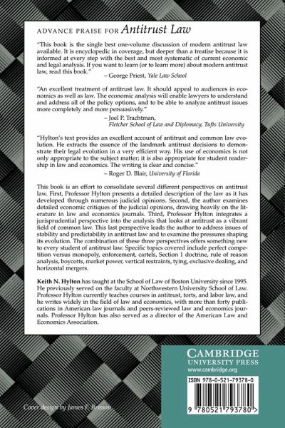 This book is an effort to consolidate several different perspectives on antitrust law. First, Professor Hylton presents a detailed description of the law as it has developed through numerous judicial opinions. Second, the author presents detailed economic critiques of the judicial opinions, drawing heavily on the literature in law and economics journals. Third, Professor Hylton integrates a jurisprudential perspective into the analysis that looks at antitrust as a vibrant field of common law. This last perspective leads the author to address issues of certainty, stability, and predictability in antitrust law, and to examine the pressures shaping its evolution. The combination of these three perspectives offers something new to every student of antitrust law. Specific topics covered include perfect competition versus monopoly, enforcement, cartels, section 1 doctrine, rule of reason, agreement, boycott, power, vertical restraints, tying and exclusive dealing, horizontal mergers, and conglomerates.
