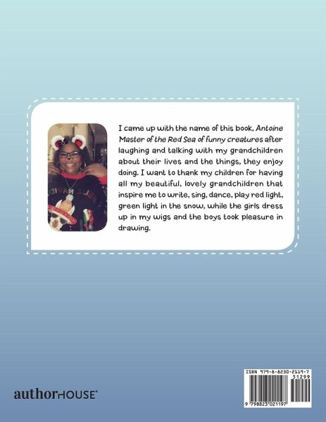 I came up with the name of this book, Antoine Master of the Red Sea of funny creatures after laughing and talking with my grandchildren about their lives and the things, they enjoy doing. I want to thank my children for having all my beautiful, lovely grandchildren that inspire me to write, sing, dance, play red light, green light in the snow, while the girls dress up in my wigs and the boys took pleasure in drawing.