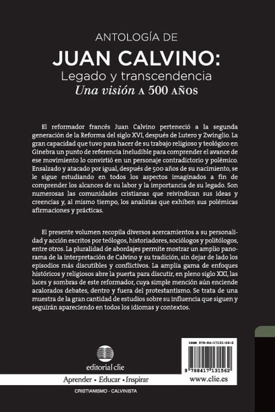 Estamos ante un libro completamente distinto a todo lo publicado sobre Calvino hasta el d¿¿a de hoy. No se trata de una biograf¿¿a m¿¿s de Juan Calvino, sino de biograf¿¿as distintas, cada una de ellas analizando un aspecto distinto de su vida, de su obra o de su pensamiento. El autor estructura estos trabajos sobre Calvino en nueve partes: Aspectos introductorios, Biograf¿¿a, Panoramas generales, Instituci¿¿n del la religi¿¿n Cristiana--teolog¿¿a y exegesis, La ¿¿tica calvinista, ¿¿mbitos de influencia, Otros contextos, Ep¿¿logo. Adem¿¿s de los temas cl¿¿sicos y habituales al hablar de Calvino y el calvinismo, figuran tambi¿¿n otros temas innovadores y apasionantes como: ¿¿Calvino, fundador de una civilizaci¿¿n¿¿, ¿¿Calvino y la opini¿¿n de los cat¿¿licos de hoy¿¿, ¿¿Mujeres alrededor de Calvino¿¿, ¿¿El exträ¿o romance de Juan Calvino e Idelette de Bure¿¿, ¿¿El dinero y la propiedad¿¿, ¿¿Antecedentes de teolog¿¿a de liberaci¿¿n en la herencia calvinistä¿ etc. Una obra de consulta actual y de talla, imprescindible para todos los interesados en el tema de Calvino y la influencia del calvinismo en la Iglesia y en la Sociedad.