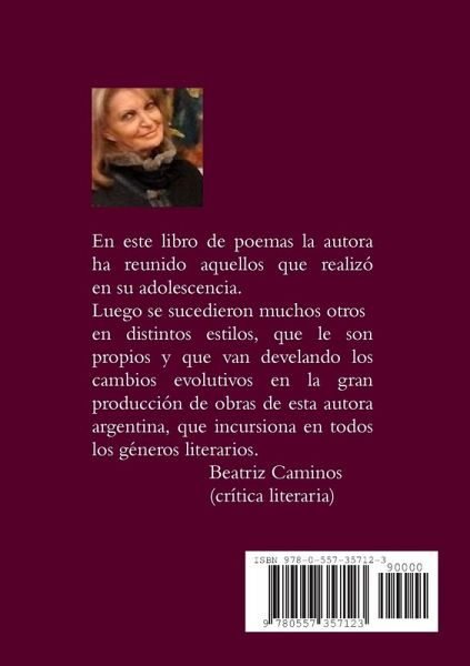 No bien saliera de la escuela primaria, la autora comienza su gran producción de poemas que se muestran en esta antología y luego continúa durante años perfeccionando y creando estilos propios. Incursiona en casi todos lo géneros literarios y su producción es muy prolífera.En esta muestra ella da los primeros pasos en su larga carrera artística. Los temas principales son el amor, el desencanto, ausencias y soledades, entre otras cosas, como son las profundas reflexiones que se deslizan entre sus versos de estilo libre.Hoy la autora cuenta con trece antologías poéticas unipersonales.