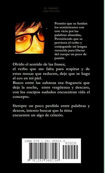 Olvido el sentido de la oración. Verbo que me fallas para conjugar, Musas que simples quieren Destacar. Busco entre las sabanas, Esa fragancia que deja La noche apasionada, Y allí entre vergüenza y descaro, Con la piel desnuda y los cuerpos Sudados; Encuentra vida el concepto. Así reviviendo algunas letras ya usadas y fundiéndolas con un poco de verbo nuevo, logro retomar ese aire que desborda la pasión desmesurada que atrae a mis queridas musas.