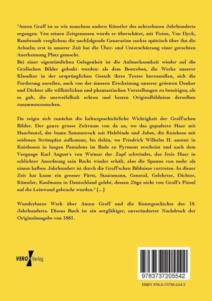 Wunderbares Werk über Anton Graff und die Kunstgeschichte des 18. Jahrhunderts. Dieses Buch ist ein sorgfältiger, unveränderter Nachdruck der Originalausgabe von 1881.