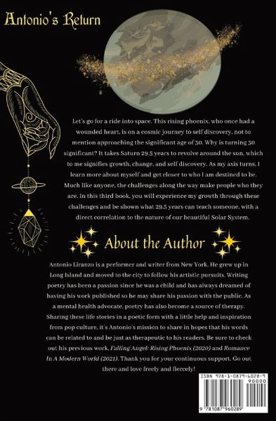 Let's go for a ride into space. This rising phoenix, who once had a wounded heart, is on a cosmic journey to self discovery, not to mention approaching the significant age of 30. Why is turning 30 significant? It takes Saturn 29.5 years to revolve around the sun, which to me signifies growth, change, and self discovery. As my axis turns, I learn more about myself and get closer to who I am destined to be. Much like anyone, the challenges along the way make people who they are. In this third book, you will experience my growth through these challenges and be shown what 29.5 years can teach someone, with a direct correlation to the nature of our beautiful Solar System.