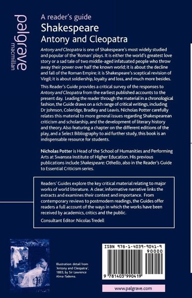 Introduction: 'Like to a Vagabond Flag Upon a Stream': The Vagaries of Opinion Concerning Antony and Cleopatra.- 'Let's Do It After the High Roman Fashion': Shakespeare's Classical World.- Shakespeare's World Well Lost? Theatre in England During the Interregnum and After.- Dryden's Re-Vision of Antony and Cleopatra.- Romantics to Victorians: 'This enchanting Queen'.- Modernists: 'No more but e'en a woman'.- The Editions: 'The varying shore o' the world'.- The Romanness of the Roman Plays (1).- The Romanness of the Roman Plays (2).- Postmodernists: Antony and Cleopatra: 'A child o' the time'?.- Conclusion: 'Infinite Variety'?.- Notes.- Select Bibliography.- Index.