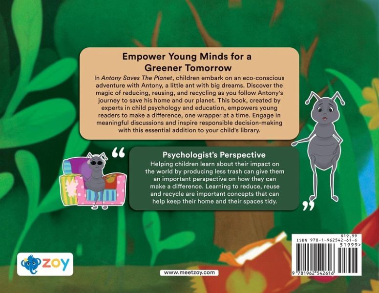 Join Antony the ant in Antony Saves The Planet, a heartwarming SEL story for 5-8 y/o. Learn to reduce, reuse, and recycle for a better world!