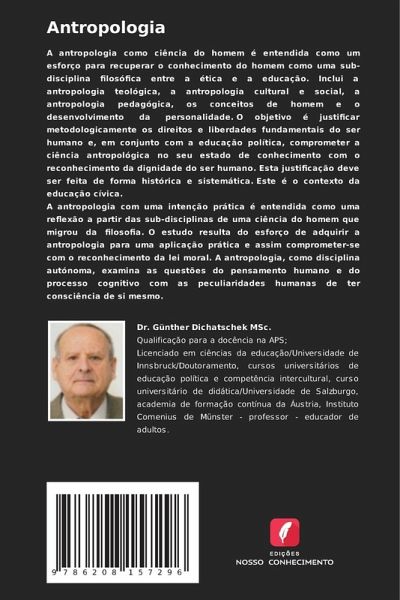 A antropologia como ciência do homem é entendida como um esforço para recuperar o conhecimento do homem como uma sub-disciplina filosófica entre a ética e a educação. Inclui a antropologia teológica, a antropologia cultural e social, a antropologia pedagógica, os conceitos de homem e o desenvolvimento da personalidade. O objetivo é justificar metodologicamente os direitos e liberdades fundamentais do ser humano e, em conjunto com a educação política, comprometer a ciência antropológica no seu estado de conhecimento com o reconhecimento da dignidade do ser humano. Esta justificação deve ser feita de forma histórica e sistemática. Este é o contexto da educação cívica.A antropologia com uma intenção prática é entendida como uma reflexão a partir das sub-disciplinas de uma ciência do homem que migrou da filosofia. O estudo resulta do esforço de adquirir a antropologia para uma aplicação prática e assim comprometer-se com o reconhecimento da lei moral. A antropologia, como disciplina autónoma, examina as questões do pensamento humano e do processo cognitivo com as peculiaridades humanas de ter consciência de si mesmo.