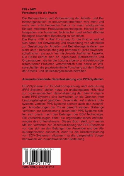 0 d EDV-Systeme zur Produktionsplanung und -steuerung (PPS-Systeme) stellen heute ein unabdingbares Hilfsmittel zur organisatorischen Rationalisierung dar. Zentral organisierte PPS-Systeme sind inzwischen an die Grenzen ihrer Leistungsfähigkeit gestoßen. Dezentrale, auf mehrere Subsysteme verteilte PPS-Systeme können auch den zukünftigen Anforderungen der Praxis gerecht werden. Bisherige Verfahren zur Konzipierung dezentraler PPS-Systeme richten sich primär nach den Belangen der EDV-Technologie. Sie vernachlässigen damit die organisatorischen Anforderungen des Unternehmens. Dieses Buch stellt zum ersten Mal ein Verfahren zur Dezentralisierung von PPS-Systemen vor, das sich an den Belangen der Anwender und der Ablauforganisation ausrichtet. Auch für die Dezentralisierung von EDV-Systemen allgemein ist die dargestellte Vorgehensweise von zukunftsweisender Bedeutung.
