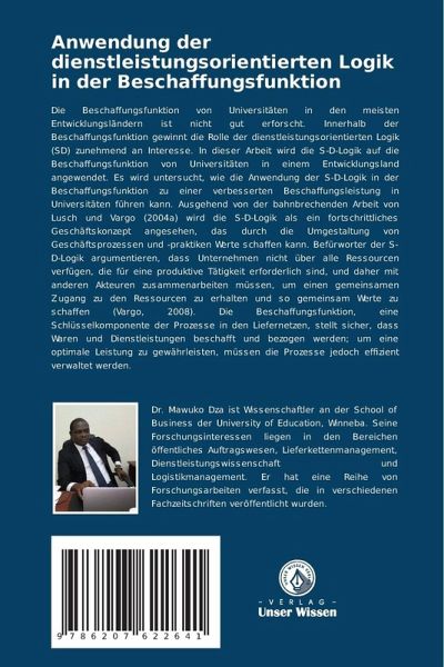 Die Beschaffungsfunktion von Universitäten in den meisten Entwicklungsländern ist nicht gut erforscht. Innerhalb der Beschaffungsfunktion gewinnt die Rolle der dienstleistungsorientierten Logik (SD) zunehmend an Interesse. In dieser Arbeit wird die S-D-Logik auf die Beschaffungsfunktion von Universitäten in einem Entwicklungsland angewendet. Es wird untersucht, wie die Anwendung der S-D-Logik in der Beschaffungsfunktion zu einer verbesserten Beschaffungsleistung in Universitäten führen kann. Ausgehend von der bahnbrechenden Arbeit von Lusch und Vargo (2004a) wird die S-D-Logik als ein fortschrittliches Geschäftskonzept angesehen, das durch die Umgestaltung von Geschäftsprozessen und -praktiken Werte schaffen kann. Befürworter der S-D-Logik argumentieren, dass Unternehmen nicht über alle Ressourcen verfügen, die für eine produktive Tätigkeit erforderlich sind, und daher mit anderen Akteuren zusammenarbeiten müssen, um einen gemeinsamen Zugang zu den Ressourcen zu erhalten und so gemeinsam Werte zu schaffen (Vargo, 2008). Die Beschaffungsfunktion, eine Schlüsselkomponente der Prozesse in den Liefernetzen, stellt sicher, dass Waren und Dienstleistungen beschafft und bezogen werden; um eine optimale Leistung zu gewährleisten, müssen die Prozesse jedoch effizient verwaltet werden.
