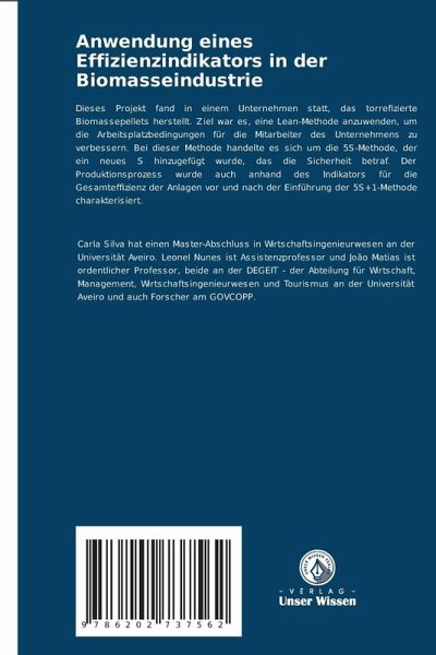 Dieses Projekt fand in einem Unternehmen statt, das torrefizierte Biomassepellets herstellt. Ziel war es, eine Lean-Methode anzuwenden, um die Arbeitsplatzbedingungen für die Mitarbeiter des Unternehmens zu verbessern. Bei dieser Methode handelte es sich um die 5S-Methode, der ein neues S hinzugefügt wurde, das die Sicherheit betraf. Der Produktionsprozess wurde auch anhand des Indikators für die Gesamteffizienz der Anlagen vor und nach der Einführung der 5S+1-Methode charakterisiert.