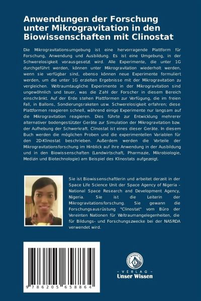 Die Mikrogravitationsumgebung ist eine hervorragende Plattform für Forschung, Anwendung und Ausbildung. Es ist eine Umgebung, in der Schwerelosigkeit vorausgesetzt wird. Alle Experimente, die unter 1G durchgeführt werden, können unter Mikrogravitation wiederholt werden, wenn sie verfügbar sind, ebenso können neue Experimente formuliert werden, um die unter 1G erzielten Ergebnisse mit der Mikrogravitation zu vergleichen. Weltraumtaugliche Experimente in der Mikrogravitation sind ungewöhnlich und teuer, was die Zahl der Forscher in diesem Bereich einschränkt. Auf der Erde stehen Plattformen zur Verfügung, die im freien Fall, in Ballons, Sondierungsraketen usw. Schwerelosigkeit erfahren; diese Plattformen reagieren schnell, während einige Experimente nur langsam auf die Mikrogravitation reagieren. Dies führte zur Entwicklung mehrerer alternativer bodengestützter Geräte zur Simulation der Mikrogravitation bzw. der Aufhebung der Schwerkraft. Clinostat ist eines dieser Geräte. In diesem Buch werden die möglichen Proben und die experimentellen Variablen für den 2D-Klinostat beschrieben. Außerdem werden die Vorteile der Mikrogravitationsforschung im Hinblick auf ihre Anwendung in der Ausbildung und in den Biowissenschaften (Landwirtschaft, Pharmazie, Mikrobiologie, Medizin und Biotechnologie) am Beispiel des Klinostats aufgezeigt.