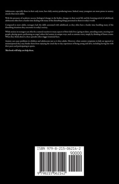 Adolescents, especially those in their early teens, have daily anxiety-producing issues. Indeed, many youngsters are more prone to anxiety attacks than most adults. With the pressures of academic success, biological changes in the bodies, changes in their social life and the looming arrival of adulthood, adolescents often have a harder time dealing with many of the disturbing things presented to them in today's world. Compared to most adults, teenagers lack the skills associated with adulthood, so they often have a harder time handling many of the disturbing situations they encounter in today's society. While anxiety in teenagers can often be a natural reaction to many aspects of their daily lives (going on dates, attending exams, meeting new people, playing sports, performing on stage) others feel anxiety in unique ways, such as extreme worry simply by thinking of future events. When they think about it, these episodes often trigger irrational fears. Anxiety can cause problems in children and adolescents just as it does adults. However, when anxiety symptoms in kids are ignored or misinterpreted they may hinder them from enjoying the usual day-to-day experiences of being young and alive, including having fun with their peers and participating in sports. This book will help you help them.