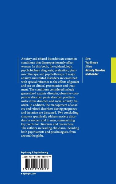 "This comprehensive book thoughtfully describes several variations of anxiety disorders and the gender and sex specific factors related to anxiety disorders. ... This book is appropriate for any clinicians with the interest, training, and expertise to care for those diagnosed with anxiety disorders. It also serves as a valuable resource for anyone hoping to understand the different models and dimensions of anxiety disorders. ... serves as an authoritative resource for understanding the interplay of these disorders with sex and gender." (Sheila Lahijani, Doody's Book Reviews, November, 2015)