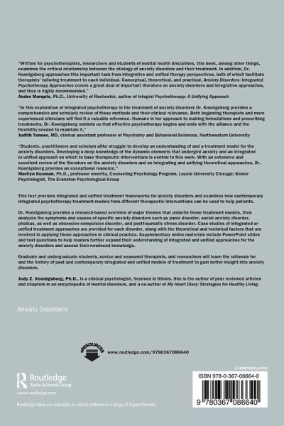 This text provides integrated and unified treatment frameworks for anxiety disorders and examines how contemporary integrated psychotherapy treatment models from different therapeutic interventions can be used to help patients.