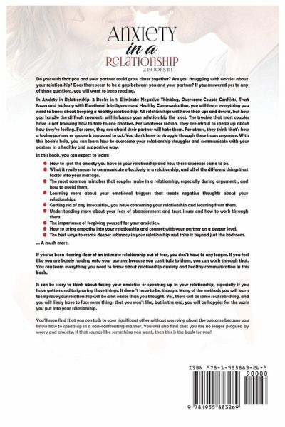 Do you wish that you and your partner could grow closer together? Are you struggling with worries about your relationship? Does there seem to be a gap between you and your partner? If you answered yes to any of these questions, then this book is for you... In Anxiety in a Relationship, you'll learn everything you need to know about keeping a healthy relationship. All relationships will have their ups and downs, but how you handle the difficult moments will influence your relationship the most. The trouble that most couples have is not knowing how to talk to one another. For whatever reason, they're afraid to speak up about how they're feeling. For some, they're afraid their partner will hate them. For others, they think that's how a loving partner or spouse is supposed to act. You don't have to struggle through these issues anymore. With this book's help, you'll learn how to overcome your relationship struggles and communicate with your partner in a healthy and supportive way... This two-in-one series includes the following 2 books: 1. Anxiety in a Relationship: How to Eliminate Negative Thinking and Insecurity in Your Relationship, Overcome Jealousy, Fear of Abandonment, Trust Issues, & Improve Your Communication with Your Partner 2. Relationship Communication: How to Resolve Any Conflict with Your Partner, Avoid Communication Mistakes, Create Deeper Intimacy, and Gain Healthy Conflict Resolution in Your Relationship In this book you'll learn: How to spot the anxiety you have in your relationship and how these anxieties came to be. What it really means to communicate effectively in a relationship, and all of the different things that factor into your message. The most common mistakes that couples make in a relationship, especially during arguments, and how to avoid them. Learning more about your emotional triggers that create negative thoughts about your relationships. Getting rid of any insecurities you have concerning your relationship and learning from them. Understanding more about your fear of abandonment and trust issues and how to work through them. The importance of forgiving yourself for your anxieties. How to bring empathy into your relationship and connect with your partner on a deeper level. The best ways to create deeper intimacy in your relationship and take it beyond just the bedroom... You'll also learn: How to resolve conflicts How to prevent conflicts from occurring How to mend the damage caused by arguments and misunderstandings How to strengthen intimacy with verbal and bodily communication How to communicate your intimate needs and wants with touch, sound, and sight What it means to address consent, expectations, and hang-ups How to identify and utilize the five languages of love What relationship communication specifically means to you The many outlets for communication- including physical, verbal, and more! Learning how to tackle and discuss difficult topics How to embrace and understand empathy How to talk to your partner in any situation And so much more! You'll soon find that you can talk to your significant other without worrying about the outcome because you know how to speak up in a non-confronting manner. You'll also find that you're no longer plagued by worry and anxiety. If that sounds like something you want, then get this book and start your journey today! Grab your copy of Anxiety in a Relationship now!