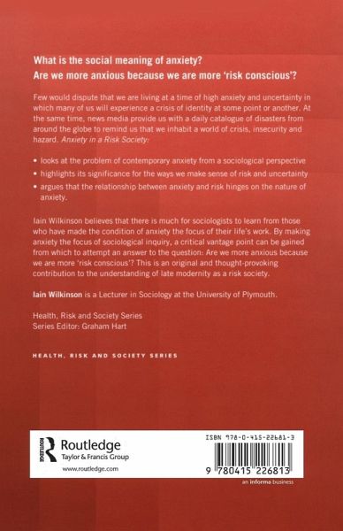 Few would dispute that we are living at a time of high anxiety and uncertainty in which many of us will experience a crisis of identity at some point or another. At the same time, news media provide us with a daily catalogue of disasters from around the globe to remind us that we inhabit a world of crisis, insecurity and hazard. Anxiety in a Risk Society : looks at the problem of contemporary anxiety from a sociological perspective highlights its significance for the ways we make sense of risk and uncertainty argues that the relationship between anxiety and risk hinges on the nature of anxiety. Iain Wilkinson believes that there is much for sociologists to learn from those who have made the condition of anxiety the focus of their life's work. By making anxiety the focus of sociological inquiry, a critical vantage point can be gained from which to attempt an answer to the question: Are we more anxious because we are more risk conscious? This is an original and thought-provoking contribution to the understanding of late modernity as a risk society.