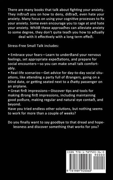 There are many books that talk about fighting your anxiety. They instruct you on how to deny, distract, even hate your anxiety. Many focus on using your cognitive processes to fix your anxiety. Some even encourage you to rage at and hate your anxiety. Whilst these approaches can alleviate anxiety to some degree, they don't quite teach you how to actually deal with it effectively with a long term effect. Stress-Free Small Talk includes: • Embrace your fears—Learn to understand your nervous feelings, set appropriate expectations, and prepare for social encounters—so you can make small talk comfortably. • Real-life scenarios—Get advice for day-to-day social situations, like attending a party full of strangers, going on a blind date, or getting seated next to a chatty passenger on an airplane. • Great first impressions—Discover tips and tools for making strong first impressions, including maintaining good posture, making regular and natural eye contact, and beyond. Have you tried endless other solutions, but nothing seems to work for more than a couple of weeks? Do you finally want to say goodbye to that dread and hopelessness and discover something that works for you?