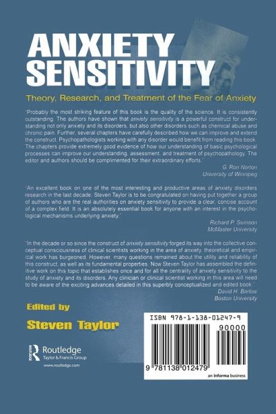 This first comprehensive state-of-the-art review of all aspects of theory, research & treatment of anxiety sensitivity is an invaluable resource for clinicians, researchers, students and trainees in all the mental health professions.