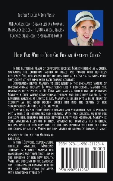 In the glittering realm of corporate success, Marilyn reigns as a queen, navigating the cutthroat world of deals and power with ruthless efficiency. Yet, her ascent to the top has come at a cost - a haunting price that claws at her mind with each closing contract. Desperation, after trying everything else, drives Marilyn to seek relief for her anxiety in the uncharted waters of unconventional therapy. In what seems like a coincidental manner, she discovers the services of Dr. Drye who makes a bold claim: she promises Marilyn a cure where conventional therapy and pills have failed. In the beautiful gardens at Drye's clinic, Marilyn is lulled into a false sense of security as the good doctor guides her into the depths of her subconscious. At first, all seems well. However, as she finds herself relaxed and vulnerable, she is plunged into a world of nightmares and horrors. With each session, an eerie fog envelops her, blurring the lines between reality and nightmare. Marilyn is sure something feels off in these sessions but dismisses her intuition, holding onto the thin hope that the doctor's expertise will free her from the chains of anxiety. When the thin veneer of normalcy cracks, it might possibly be too late for Marilyn to back out. In this 16k-word, supernatural horror thriller novelette, Marilyn's journey is a battle against her own demons and those that lurk in the shadows of her new reality. Will she succumb to the darkness that threatens to consume her, or will she emerge from the abyss with newfound strength?
