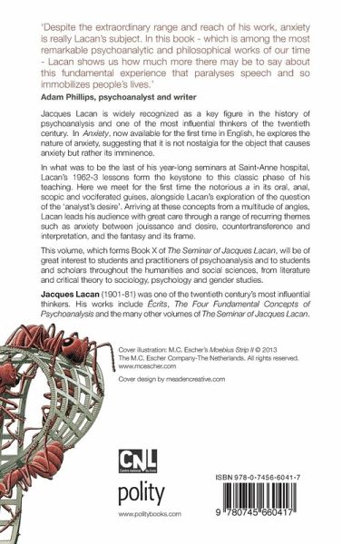 Despite the extraordinary range and reach of his work, anxiety is really Lacan's subject. In this book - which is among the most remarkable psychoanalytic and philosophical works of our time - Lacan shows us how much more there may be to say about this fundamental experience that paralyses speech and so immobilises people's lives.