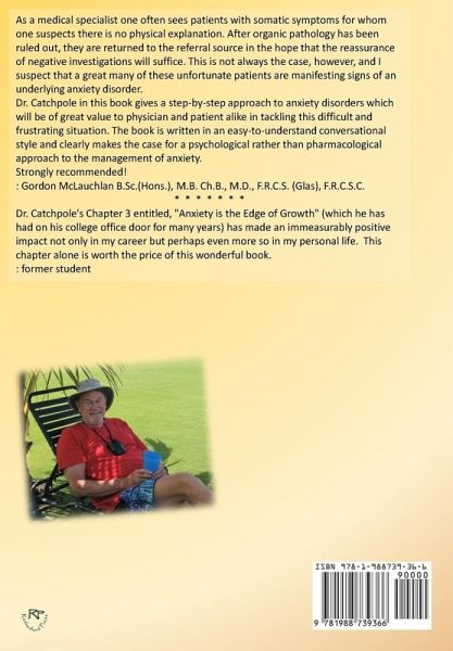 Written for both professionals and lay-people, this book explains the difference in treatment that one should apply to anxiety-related disorders, rather than to a dysfunctional or diseased brain. Employing Cognitive Behavioral Therapy principles, Dr. Catchpole leads the reader through proven, clearly explained steps to conquer anxiety. "As a medical specialist one often sees patients with somatic symptoms for whom one suspects there is no physical explanation. After organic pathology has been ruled out, they are returned to the referral source in the hope that the reassurance of negative investigations will suffice. This is not always the case, however, and I suspect that a great many of these unfortunate patients are manifesting signs of an underlying anxiety disorder. Dr. Catchpole in this book gives a step-by-step approach to anxiety disorders which will be of great value to physician and patient alike in tackling this difficult and frustrating situation. The book is written in an easy-to-understand conversational style and clearly makes the case for a psychological rather than pharmacological approach to the management of anxiety. Strongly recommended!" : Dr. Gordon McLauchlan