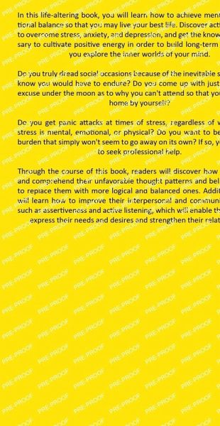 In this life-altering book, you will learn how to achieve mental and emotional balance so that you may live your best life. Discover actionable ways to overcome stress, anxiety, and depression, and get the knowledge necessary to cultivate positive energy in order to build long-term resilience as you explore the inner worlds of your mind. Do you truly dread social occasions because of the inevitable small talk you know you would have to endure? Do you come up with just about every excuse under the moon as to why you can't attend so that you can remain home by yourself? Do you get panic attacks at times of stress, regardless of whether that stress is mental, emotional, or physical? Do you want to be free of this burden that simply won't seem to go away on its own? If so, you may want to seek professional help. Through the course of this book, readers will discover how to recognize and comprehend their unfavorable thought patterns and beliefs and how to replace them with more logical and balanced ones. Additionally, they will learn how to improve their interpersonal and communication skills, such as assertiveness and active listening, which will enable them to better express their needs and desires and strengthen their relationships.
