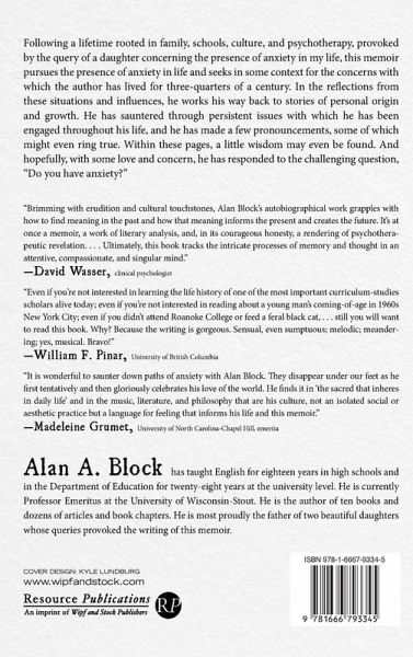 Following a lifetime rooted in family, schools, culture, and psychotherapy, provoked by the query of a daughter concerning the presence of anxiety in my life, this memoir pursues the presence of anxiety in life and seeks in some context for the concerns with which the author has lived for three-quarters of a century. In the reflections from these situations and influences, he works his way back to stories of personal origin and growth. He has sauntered through persistent issues with which he has been engaged throughout his life, and he has made a few pronouncements, some of which might even ring true. Within these pages, a little wisdom may even be found. And hopefully, with some love and concern, he has responded to the challenging question, ""Do you have anxiety?""