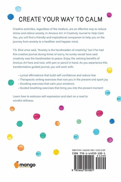 Lyrical affirmations that build self-confidence and reduce fear Therapeutic writing exercises that root you in the present and spark joy Doodling that calms your emotions Guided breathing exercises that bring you into the present moment Fans of Wreck This Journal, Tiny Buddha's Worry Journal or I Am Her Now will love the calming benefits of Anxious Art