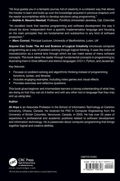 Anyone Can Code: The Art and Science of Logical Creativity introduces computer programming as a way of problem-solving through logical thinking. It uses the notion of modularization as a central lens through which we can make sense of many software concepts. This book takes the reader through fundamental concepts in programming by illustrating them in three different and distinct languages: C/C++, Python, and Javascript. Key features: Focuses on problem-solving and algorithmic thinking instead of programming functions, syntax, and libraries; Includes engaging examples, including video games and visual effects; Provides exercises and reflective questions. This book gives beginner and intermediate learners a strong understanding of what they are doing so that they can do it better and with any other tool or language that they may end up using later.