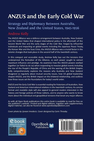 The ANZUS Alliance was a defence arrangement between Australia, New Zealand and the United States that shaped international policy in the aftermath of the Second World War and the early stages of the Cold War. Forged by influential individuals and impacting on global events including the Japanese Peace Treaty, the Korean War and the Suez Crisis, the ANZUS Alliance was a crucial factor in the seismic changes that took place in the second half of the twentieth century. In this compact and accessible study Andrew Kelly lays out the tensions that underpinned the formation of the Alliance, as each power sought to extract maximum influence and prestige, and examines how the ANZUS powers worked together (or failed to do so) when responding to massive global events including the rise of the People's Republic of China and the waning of the British Empire. Kelly comprehensively explores the reasons why Australia and New Zealand disagreed so regularly about mutual security issues, how US global leadership shaped ANZUS, and the British impact on the trilateral relationship, and outlines how these issues set the foundations for today's world order. ANZUS and the Early Cold War is essential reading for historians of Australian, New Zealand and American international relations in the twentieth century. Its concise format and readable style will also appeal to general readers interested in the history and foreign policies of these nations, and to anyone who wants to know more about the individual and geopolitical tensions that beset any major alliance.