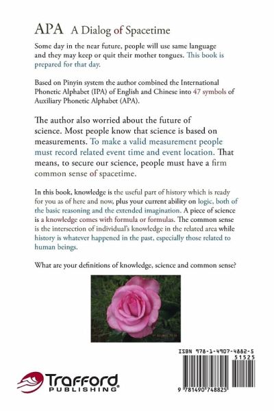 Some day in the near future, people will use same language and they may keep or quit their mother tongues. This book is prepared for that day. Based on Pinyin system the author combined the International Phonetic Alphabet (IPA) of English and Chinese into 47 symbols of Auxiliary Phonetic Alphabet (APA). The author also worried about the future of science. Most people know that science is based on measurements. To make a valid measurement people must record related event time and event location. That means, to secure our science, people must have a firm common sense of spacetime. In this book, knowledge is the useful part of history which is ready for you as of here and now, plus your current ability on logic, both of the basic reasoning and the extended imagination. A piece of science is a knowledge comes with formula or formulas. The common sense is the intersection of individual's knowledge in the related area while history is whatever happened in the past, especially those related to human beings. What are your definitions of knowledge, science and common sense?