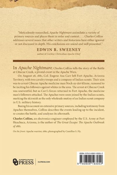 In An Apache Nightmare, Charles Collins tells the story of the Battle at Cibecue Creek, a pivotal event in the Apache Wars. On August 28, 1881, Col. Eugene Asa Carr left Fort Apache, Arizona Territory, with two cavalry troops and a company of Indian scouts. Their aim was to arrest a Cibecue Apache medicine man, Nock-ay-det-klinne, rumored to be inciting his followers against whites in the area. The arrest at Cibecue Creek was uneventful, but as Carr's forces returned to Fort Apache, the medicine man's followers attacked. The Apaches were soon joined by the Indian scouts, marking the skirmish as the only wholesale mutiny of an Indian scout company in U.S. military history. Basing his account on extensive primary sources, including testimony from Apaches themselves, Collins describes the events leading up to the incident, recreates the battle, and analyzes its aftermath.