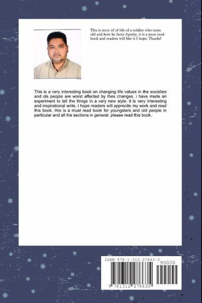 This book is a new experiment in book writing and i have focused a child who turns soldier and becomes old and=d the new changing life values how pits him to Apathy.