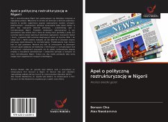 Apel o restrukturyzacj¿ Nigerii jest powtarzaj¿cym si¿ dziesi¿tym miejscem w nigeryjskiej polityce. Wzburzenie to od kilku lat dominuje w domenie publicznej i kwestia ta zostäa nag¿o¿niona poprzez wykorzystanie mediów cyfrowych, elektronicznych i drukowanych. Niniejsze opracowanie bada zatem zakres, w jakim dwa nigeryjskie dzienniki pokrywaj¿ i przedstawiaj¿ apel o restrukturyzacj¿ Nigerii. Projektem badawczym wykorzystanym w tym opracowaniu by¿a analiza tre¿ci. Dane do analizy tre¿ci pochodz¿ z próby 121 numerów dwóch celowo wybranych dzienników nigeryjskich, mianowicie: Nation i Punch, z populacji 848 numerów obejmuj¿cych okres od stycznia 2016 r. do lutego 2017 r. Wyniki badania wykazäy, ¿e oba dzienniki w znacznym stopniu pokrywaj¿ zapotrzebowanie na restrukturyzacj¿. Przedstawienie tego numeru by¿o na ogó¿ pozytywne. Wniosek jest taki, ¿e umieszczenie na pierwszych stronach gazet podpisów lub felietonów z informacjami o restrukturyzacji oraz w kolumnach redakcyjnych przyczyni¿o si¿ do udziäu spo¿ecze¿stwa poprzez artyku¿y o charakterze opiniotwórczym i ostatecznie pomog¿o w kampanii na rzecz restrukturyzacji Nigerii. Zaleca si¿, aby media po¿wi¿ci¿y tak¿ sam¿ uwag¿ innym zagadnieniom stoj¿cym przed Nigeri¿.