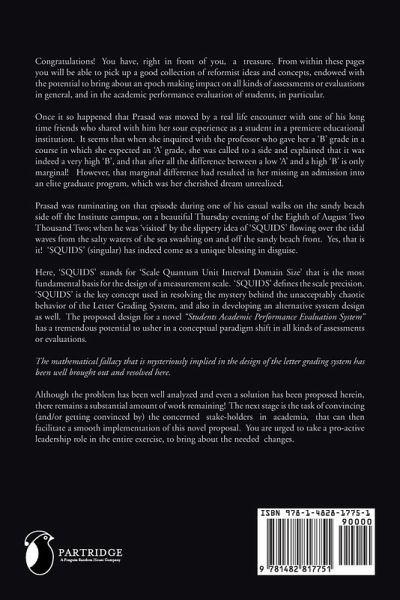 Congratulations! You have, right in front of you, a treasure. From within these pages you will be able to pick up a good collection of reformist ideas and concepts, endowed with the potential to bring about an epoch making impact on all kinds of assessments or evaluations in general, and in the academic performance evaluation of students, in particular. Once it so happened that Prasad was moved by a real life encounter with one of his long time friends who shared with him her sour experience as a student in a premiere educational institution. It seems that when she inquired with the professor who gave her a 'B' grade in a course in which she expected an 'A' grade, she was called to a side and explained that it was indeed a very high 'B', and that after all the difference between a low 'A' and a high 'B' is only marginal! However, that marginal difference had resulted in her missing an admission into an elite graduate program, which was her cherished dream unrealized. Prasad was ruminating on that episode during one of his casual walks on the sandy beach side off the Institute campus, on a beautiful Thursday evening of the Eighth of August Two Thousand Two; when he was 'visited' by the slippery idea of 'SQUIDS' fl owing over the tidal waves from the salty waters of the sea swashing on and off the sandy beach front. Yes, that is it! 'SQUIDS' (singular) has indeed come as a unique blessing in disguise. Here, 'SQUIDS' stands for 'Scale Quantum Unit Interval Domain Size' that is the most fundamental basis for the design of a measurement scale. 'SQUIDS' defines the scale precision. 'SQUIDS' is the key concept used in resolving the mystery behind the unacceptably chaotic behavior of the Letter Grading System, and also in developing an alternative system design as well. The proposed design for a novel "Students Academic Performance Evaluation System" has a tremendous potential to usher in a conceptual paradigm shift in all kinds of assessments or evaluations. The mathematical fallacy that is mysteriously implied in the design of the letter grading system has been well brought out and resolved here. Although the problem has been well analyzed and even a solution has been proposed herein, there remains a substantial amount of work remaining! The next stage is the task of convincing (and/or getting convinced by) the concerned stake-holders in academia, that can then facilitate a smooth implementation of this novel proposal. You are urged to take a pro-active leadership role in the entire exercise, to bring about the needed changes.