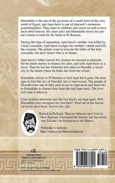 Harnakhte is the son of the governor of a small town in the very south of Egypt, and Apet-hesit is one of pharaoh's numerous granddaughters. They meet as children and swear an oath to love each other forever. Six years pass and Harnakhte leaves his parent's home to look for his bride in Pi-Ramses. During the time of separation, Apet-hesit's mother was killed by a holy crocodile. Apet-hesit avenges her mother's death and kills the creature. The priests want to execute the killer of the holy crocodile, but don't know who is to blame. Apet-hesit's father fancies his chances to succeed as pharaoh, but he needs money to finance his plan, and sells Apet-hesit as a slave. Then he has her abducted and taken to Sharakh, a secret city in the desert where he hides her from her owner. Harnakhte arrives in Pi-Ramses to find Apet-hesit gone. He manages to find the city of Sharakh, but is imprisoned. The people of Sharakh train one of their girls to act as Apet-hesit and show her to Harnakhte to distract him from the real Apet-hesit. The lovesick man is taken in. Court politics intervene and the two lovers are kept apart. Will Harnakhte ever recognize his true love? Find out in the historical novel Apet-hesit: Scarred for Life. Raised in Holland, Marcus Johnson now lives in New Zealand. Fascinated by history, his last novel was Salome: An Invitation to the Dance. Publisher's website: http://sbpra.com/MarcusJohnson