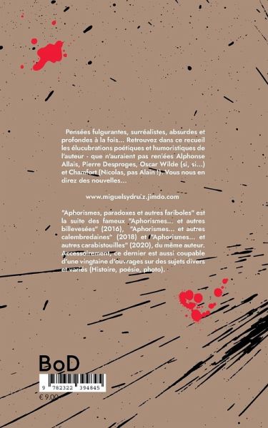 Pensées fulgurantes, surréalistes, absurdes et profondes à la fois... Retrouvez dans ce recueil les élucubrations poétiques et humoristiques de l'auteur - que n'auraient pas reniées Alphonse Allais, Pierre Desproges, Oscar Wilde (si, si...) et Chamfort (Nicolas, pas Alain !). Vous nous en direz des nouvelles...