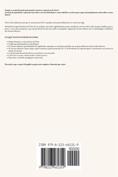 Sempre se sentiu fascinado pelo mundo esotérico e misterioso do Tarot? Gostaria de aprofundar e aprender mais sobre a arte da adivinhação e como utilizála a seu favor para captar antecipadamente sinais sobre o nosso futuro? Não se deixe influenciar pelo que os outros pensam! Dê a si próprio uma oportunidade para ver se pressente algo. Partindo das origens históricas do Tarot, da sua evolução e da tarefa e significado que assume atualmente, este livro oferece-lhe um guia completo, passo a passo e a cores, para interpretar o que está por detrás de cada carta, desde a iconografia e alegoria dos Arcanos Maiores até à à numerologia e simbolismo dos Arcanos Menores. É O QUE VAI ENCONTRAR NO LIVRO:Origens históricas e características do Tarot O papel que desempenham na adivinhação Os Arcanos Maiores: guia detalhado dos significados arquetípicos e correlação específica com os quatro diferentes Semicírculos Menores. Os Arcanos Menores: quatro naipes, quatro elementos, quatro pentáculos de 1 a 10. Revelando sua expressão geral e características em resumo em relação aos maiores. A interpretação do tarô descoberto: carta direita e carta invertida Como virar as cartas: a forma errada e a forma correcta Dicas úteis, o ritual de consagração e muito mais. Desvende o que o espera! Mergulhe no guia mais completo e ilustrado que existe!