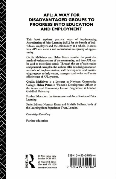 Here, the authors explore practical ways of implementing APL for the benefit of individuals, employers and the community as a whole, showing how it can make a real contribution to equality of opportunity. Chapters look at the particular needs of various sectors of the community, and how APL can be used to meet those needs. For ethnic communities, those whose first language is not English, and those who arrive in Britain with qualifications from overseas, the APL process can be a vital stage in the search for education, employment and equality of experience. People with disabilities find that APL can help break through barriers and offer new breadth of opportunity, whilst for women it can lead to greater recognition and improved career progression. Through the use of case studies and practical examples the authors offer detailed guidance on methods of implementation, staff development and continuing support to help tutors, managers and senior staff make effective use of APL.