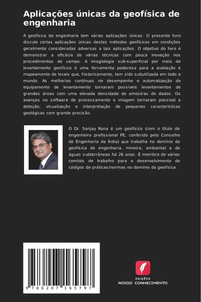 A geofísica de engenharia tem várias aplicações únicas. O presente livro discute certas aplicações únicas destes métodos geofísicos em condições geralmente consideradas adversas a tais aplicações. O objetivo do livro é demonstrar a eficácia de várias técnicas com pouca inovação nos procedimentos de campo. A imagiologia sub-superficial por meio de levantamento geofísico é uma ferramenta poderosa para a avaliação e mapeamento de locais que, historicamente, tem sido subutilizada em todo o mundo. As melhorias contínuas no desempenho e automatização do equipamento de levantamento tornaram possíveis levantamentos de grandes áreas com uma elevada densidade de amostras de dados. Os avanços no software de processamento e imagem tornaram possível a deteção, visualização e interpretação de pequenas características geológicas com grande precisão.