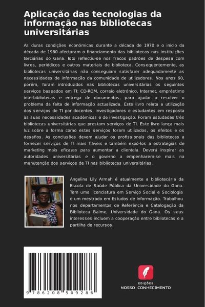 As duras condições económicas durante a década de 1970 e o início da década de 1980 afectaram o financiamento das bibliotecas nas instituições terciárias do Gana. Isto reflectiu-se nos fracos padrões de despesa com livros, periódicos e outros materiais de biblioteca. Consequentemente, as bibliotecas universitárias não conseguiam satisfazer adequadamente as necessidades de informação da comunidade de utilizadores. Nos anos 90, porém, foram introduzidos nas bibliotecas universitárias os seguintes serviços baseados em TI: CD-ROM, correio eletrónico, Internet, empréstimo interbibliotecas e entrega de documentos, para ajudar a resolver o problema da falta de informação actualizada. Este livro relata a utilização dos serviços de TI por docentes, investigadores e estudantes em resposta às suas necessidades académicas e de investigação. Foram estudadas três bibliotecas universitárias que prestam serviços de TI. Este livro lança mais luz sobre a forma como estes serviços foram utilizados, os efeitos e os desafios. As conclusões devem ajudar os profissionais das bibliotecas a fornecer serviços de TI mais fiáveis e também expô-los a estratégias de marketing mais eficazes para aumentar a clientela. Deverá inspirar as autoridades universitárias e o governo a empenharem-se mais na manutenção dos serviços de TI nas bibliotecas universitárias.